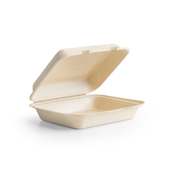 Jednokomorový menubox z cukrovej trstiny so zaklápacím vrchnákom, vhodný na transport jedla. Jednorazový ekologický menubox je ekologickou a zdravotne nezávadnou alternatívou polystyrénu, vhodný do mrazničky aj mikrovlnnej rúry. Je vyrobený z recyklovaného vlákna cukrovej trstiny, kompletne kompostovateľný.