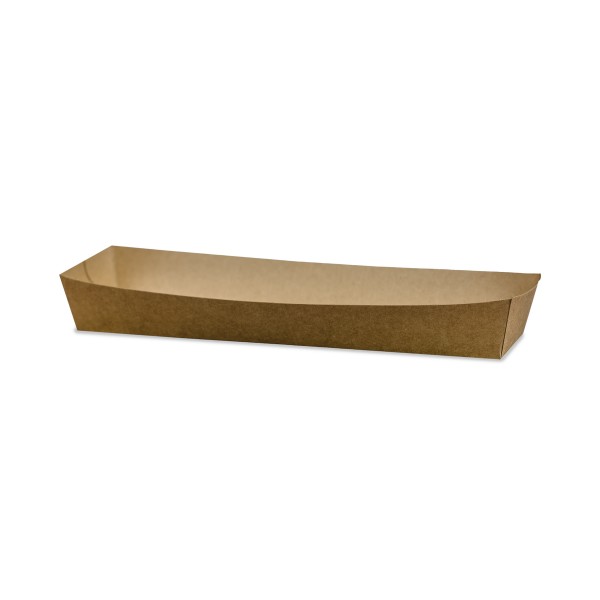 Papierová lodička na hotdog alebo bagetu. Vhodná na streetfoody či festivaly, kompletne kompostovateľná.